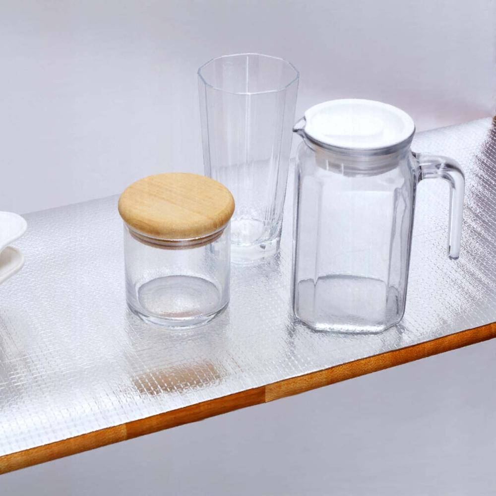 ・食器棚の収納物をイヤな害虫やニオイ、カビから守り、不衛生な雑菌の増殖も抑えますので、清潔に収納できます。 ・このシートは、表面のフィルムに防虫加工を施し、本体の発砲ポリエチレンに安全性の高い消臭・抗菌・防カビ剤を配合したシートです。 (使用される状況・条件により異なりますが、効果は開封後約6ヵ月間を目安にして買い換えてください。) ・下からの湿気や汚れを防ぎます。 ・クッション性がありますので、棚板を傷めず、キズつきを防ぎます。 ・表面は汚れても拭き取りやすく、お手入れが簡単です。 ・ハサミなどで自由なサイズにカットできるシートです。 ・食器棚をはじめ、化粧台、引き出しなど幅広くご利用いただけます。