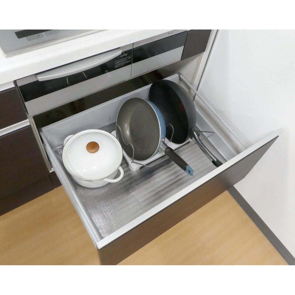 ・流し台下の収納物をイヤなニオイやカビから守り、不衛生な雑菌の増殖も抑えますので、清潔に収納できます。 ・このシートは、表面のフィルムに防虫加工を施し、本体の発砲ポリエチレンに安全性の高い消臭・抗菌・防カビ剤を配合したシートです。 (使用される状況・条件により異なりますが、効果は開封後約6ヵ月間を目安にして買い換えてください。) ・下からの湿気や汚れを防ぎます。 ・クッション性がありますので、棚板を傷めず、キズつきを防ぎます。 ・表面は汚れても拭き取りやすく、お手入れが簡単です。 ・ハサミなどで自由なサイズにカットできるシートです。