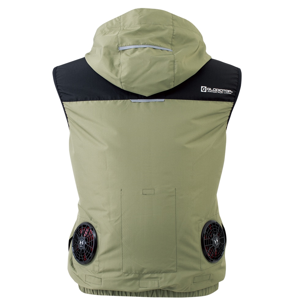 フード仕様。フードアジャスター付き。背中風気路で風の通りが良い。裾ずり上がり防止ループ付き。