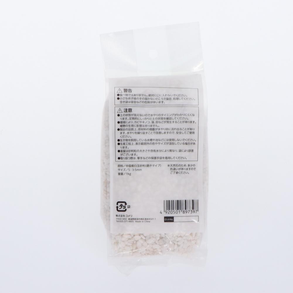 マルチングとは、鉢植えの表土を覆い隠すことです ・根にとって快適な環境を保ちます。 ・植物が病気になりにくくなります。 ・雑草を生えにくくする。 原料/中国産白玉砂利(磨きタイプ) サイズ/S:3-5mm(※) ※天然石のため、多少の 色違いがありますので ご了承ください。