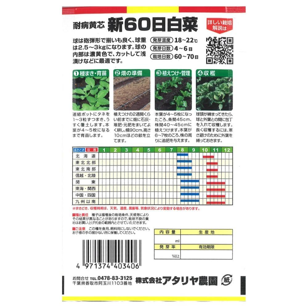 播種後65日で収穫が可能な黄芯系早生種