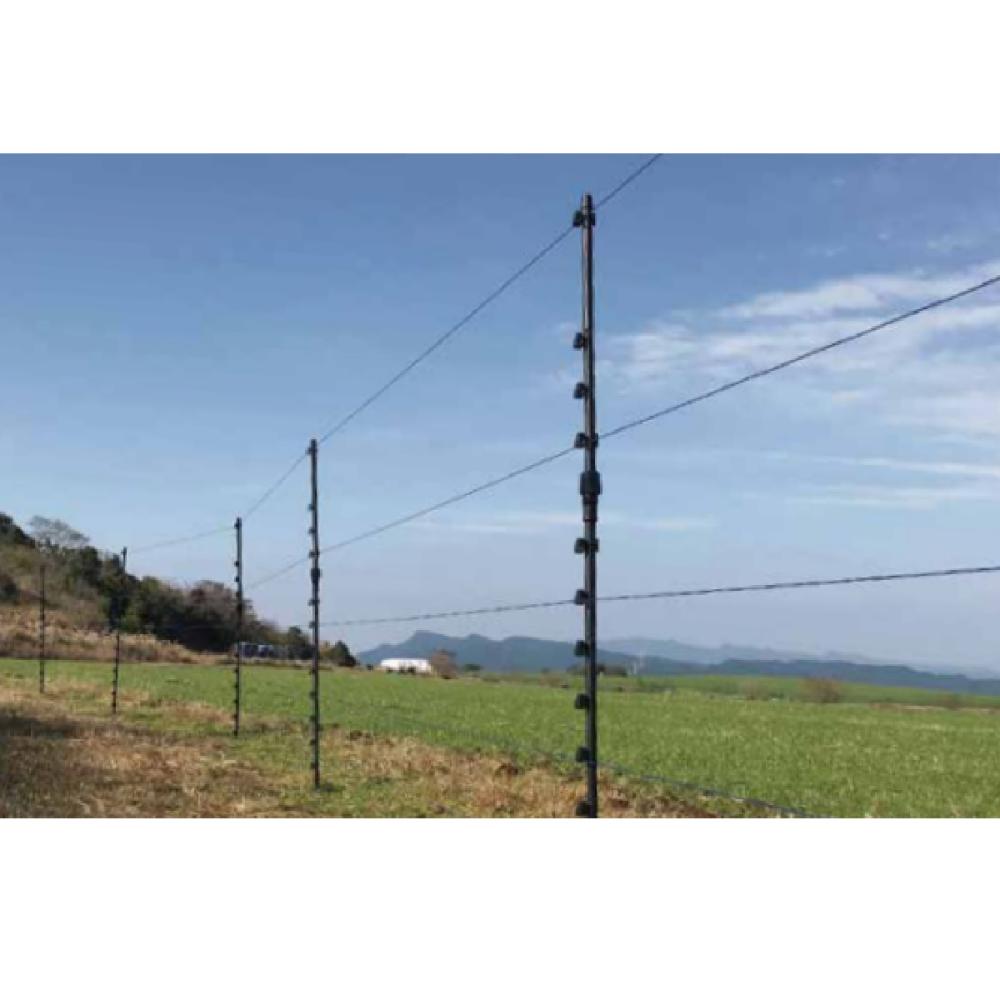優れた弾力性と耐久性があり、柵線と接触しても漏電しない完全樹脂製の支柱です。ガイシとネット取り付け用フック付き+先端部・キャップに耐衝撃性の高いポリカーボネードを使用し強度と使いやすさを追求しました。ガイシ数6個・ガイシ間隔10cm
