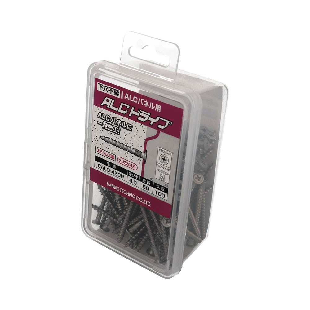 ALCパネルに使用。配線・配管サドル留め、内装下地材取付け、照明器具取付け、案内板取付け等。材質はステンレス(SUS304系)。コーナー部やコバ部へも、完璧な施工が可能。穿孔、タップ、取り付けを一工程で行います。ピッチが広い特殊ねじ山の採用で、ALCパネルにスムーズな施工ができ、安定した高い保持力を発揮します。