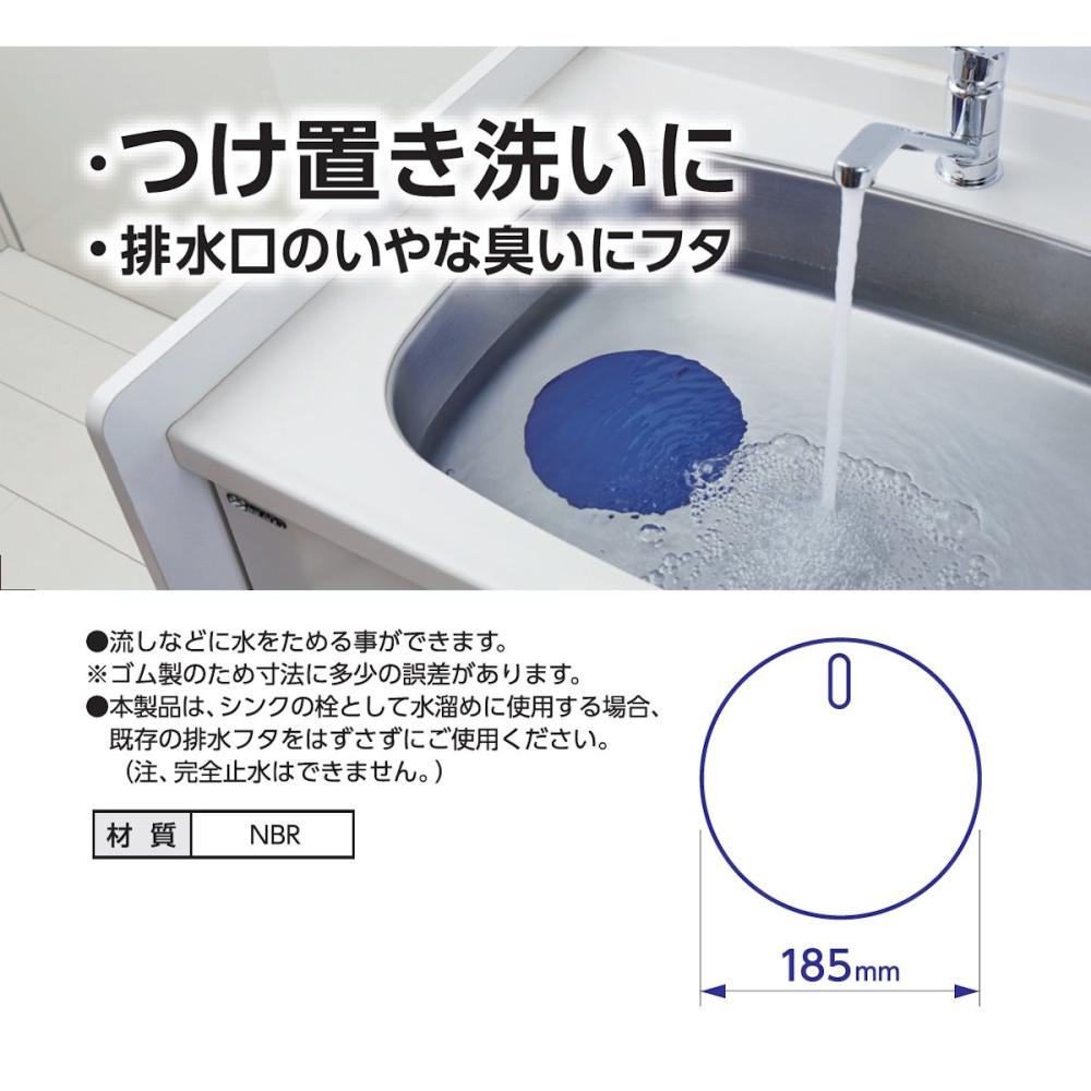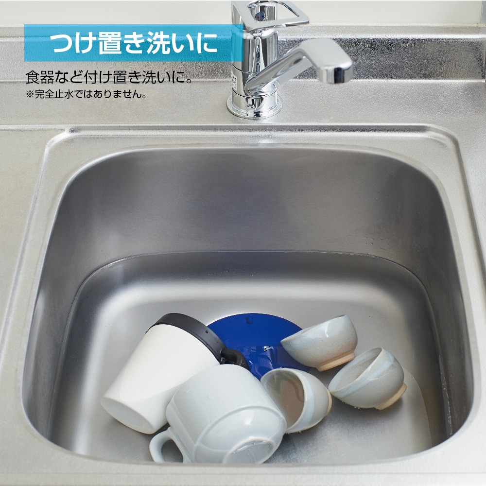 流しに水をためる時、排水口の口に置くだけで水溜が可能。つけ置き洗いやオキシ漬けに。※完全止水はできません。
