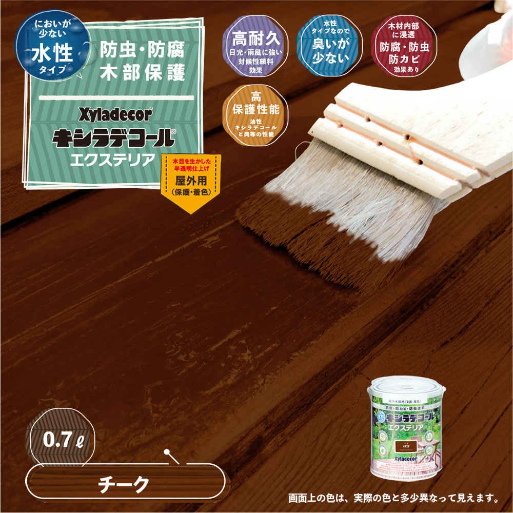 水性だから臭いが少なく作業性抜群。油性キシラデコールと同等の高い耐久性と保護性能を誇る。
