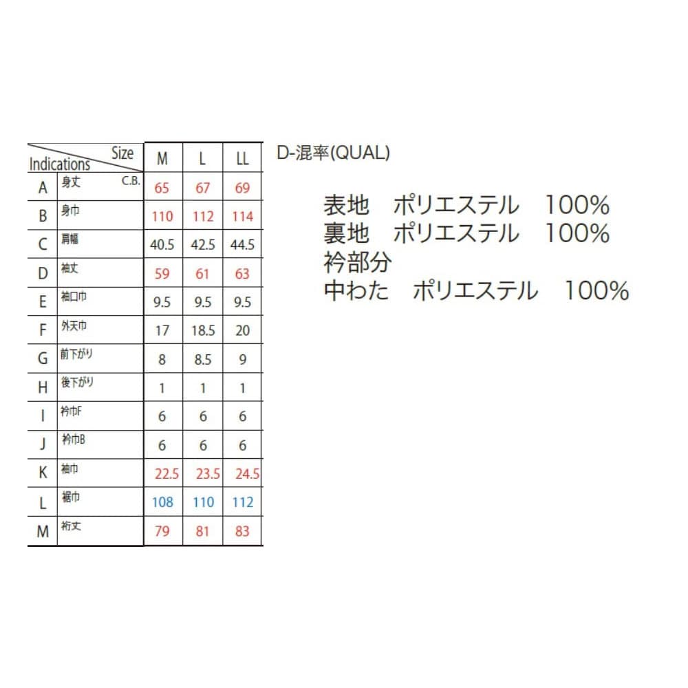 中綿/ポリエステル100%