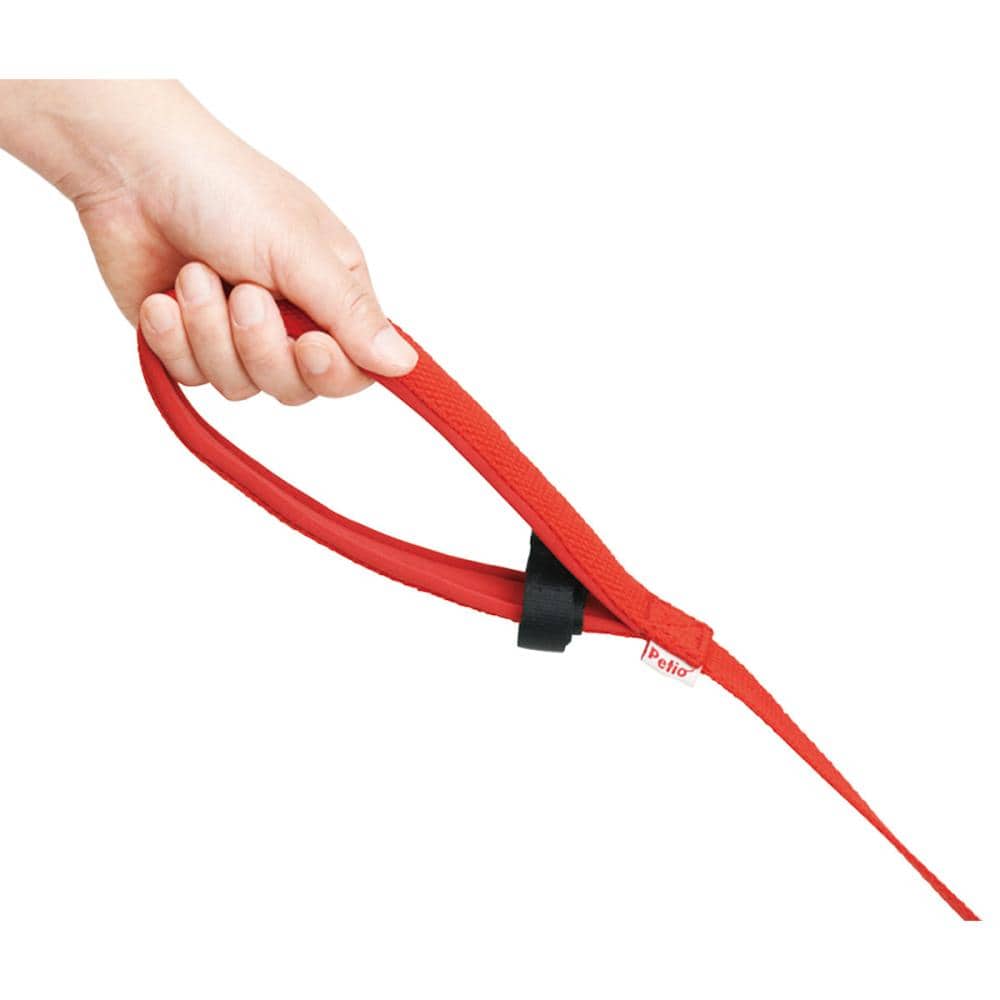 安全性を考慮し、地面や草の色にとけこまない目立つ色(赤)です。 使用後の収納に便利なテープ付。手が痛くない持ち手クッション付。 突然のスナップ外れを防止する横スライドレバー構造のP.S.S(ペティオセーフティスナップ)採用。