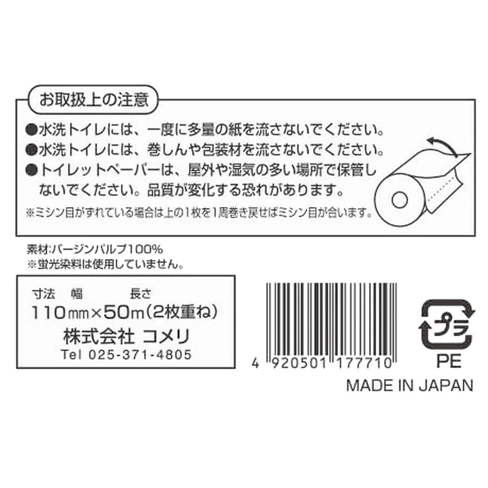 使用上の注意:・水洗トイレには、一度に多量の紙を流さないでください。 ・水洗トイレには、巻しんや包装材を流さないでください。 ・トイレットペーパーは、屋外や湿気の多い場所で保管しないでください。品質が変化する恐れがあります。 ※ミシン目がずれている場合は上の1枚を1周巻き戻せばミシン目が合います。