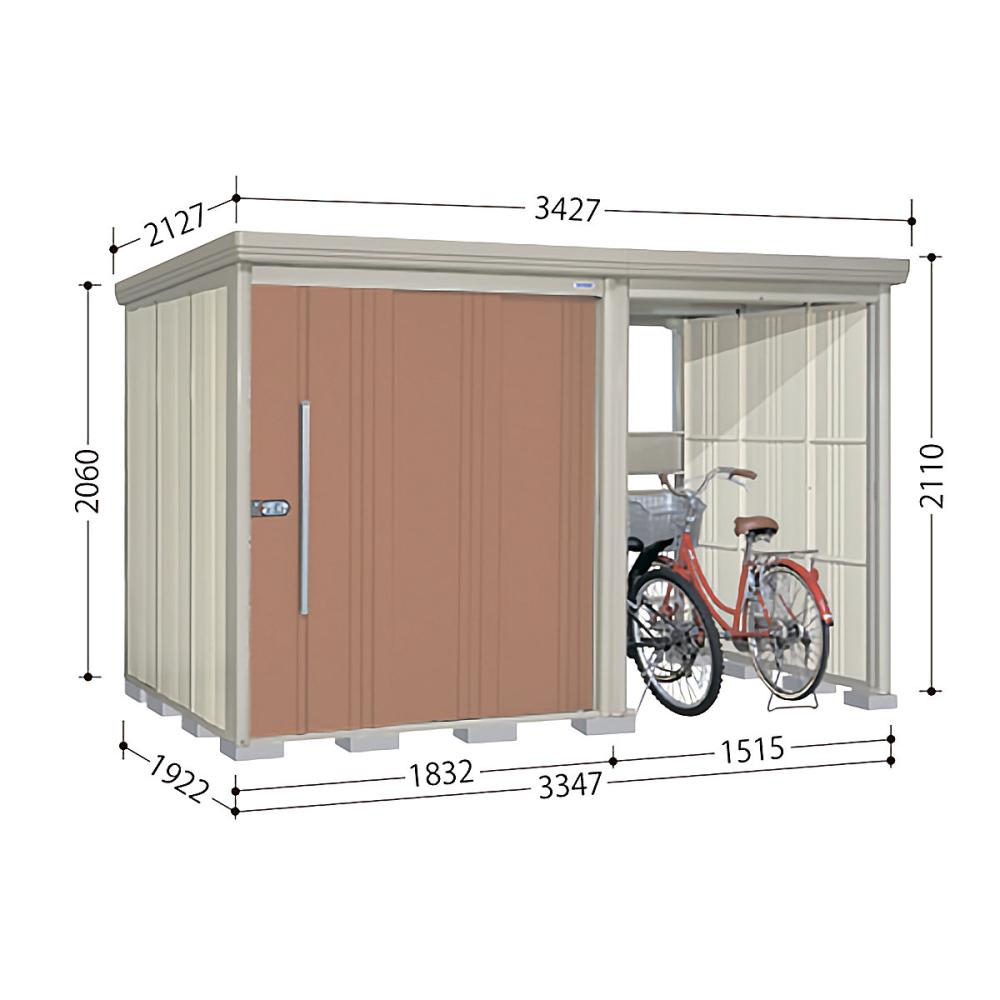 タクボ物置 Mr.ストックマン プラスアルファ 間口335×奥行192cm 駐輪部間口150cm 一般型・標準屋根 カーボンブラウン TP-3319B