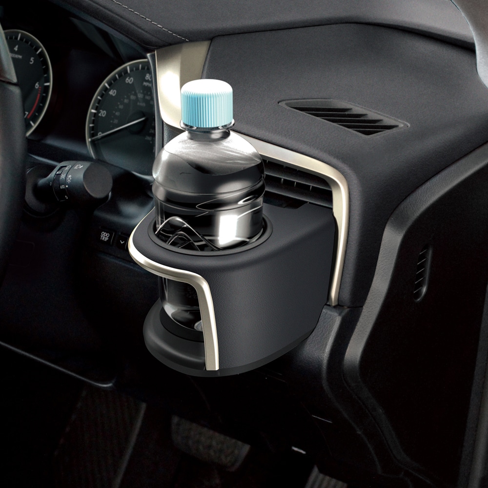 ※エアコン送風口周りに追加オプションが装着されている車両へは取り付けできません。 収納物の対応総重量は600gです。 表面にエンボスや発泡等の断熱加工がされたコンビニコーヒー等のカップを収納すると取り出しにくくなる場合があります。