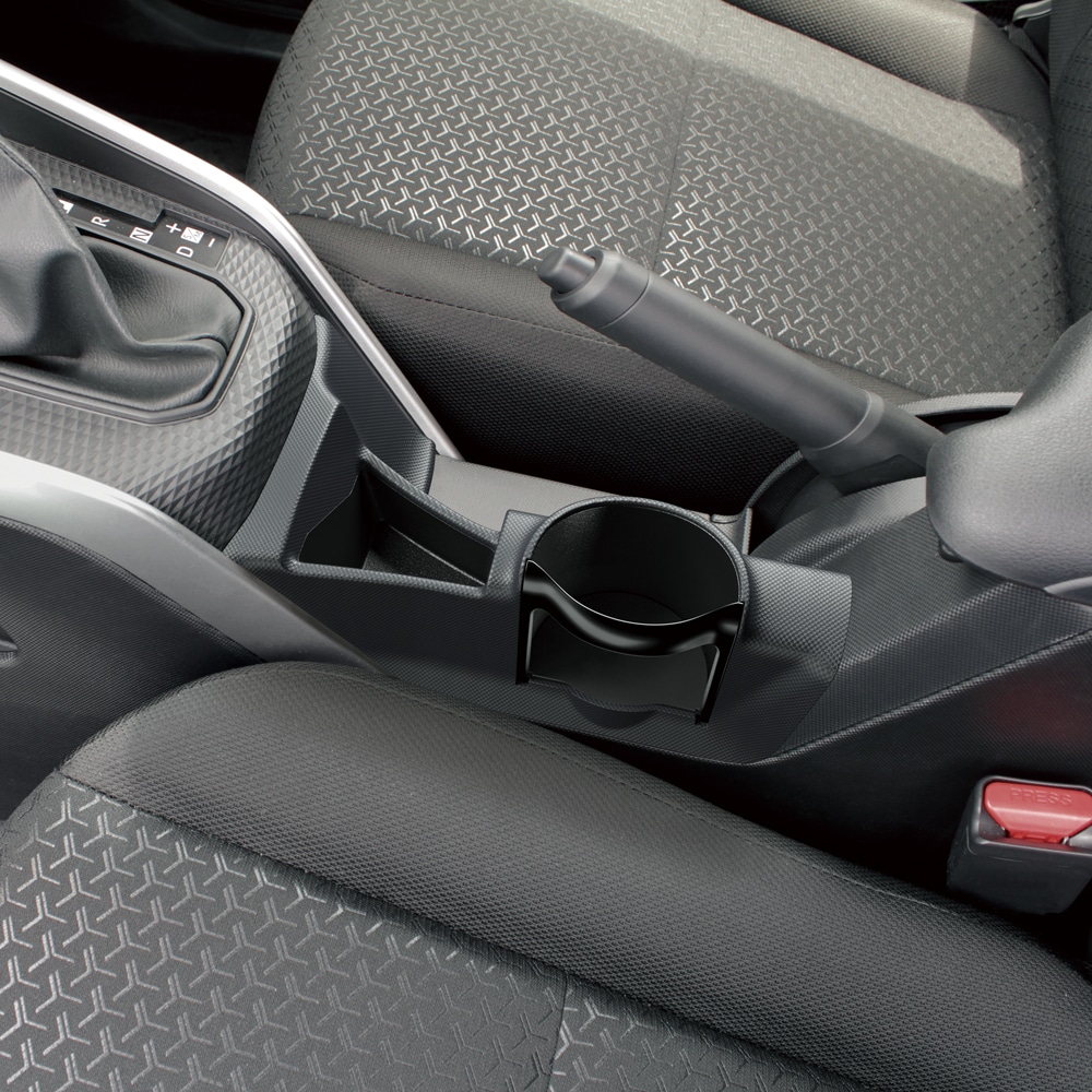 ・ライズ・ロッキー(A200/A210系)の右ハンドル車のセンターコンソールの小物入れに取り付けできるドリンクホルダー。 ・専用設計で、センターコンソールにピッタリフィット。 ・両面テープで貼り付けるだけの簡単装着。 ・細缶・350ml缶・500ml/600mlペットボトル・コンビニコーヒー等を収納可能。 ・ドリンクのガタツキを抑える底面クッション付き。 ・小物が収納できるポケット付き。