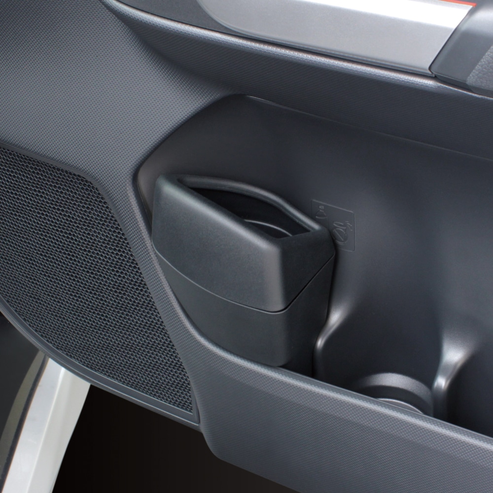・ライズ・ロッキー(A200/A210系)の右ハンドル車の運転席側フロントドアポケットに取り付けできるゴミ箱。 ・専用設計で、運転席側フロントドアポケットにピッタリフィット。 ・フロントドアポケットに入れるだけの簡単取付。 ・開口部は目立ちにくく、ゴミが捨てやすい構造。 ・たまったゴミは本体を上下分割して捨てることが可能。 ・ガタツキ防止クッションにより、走行中のガタツキ音を軽減。