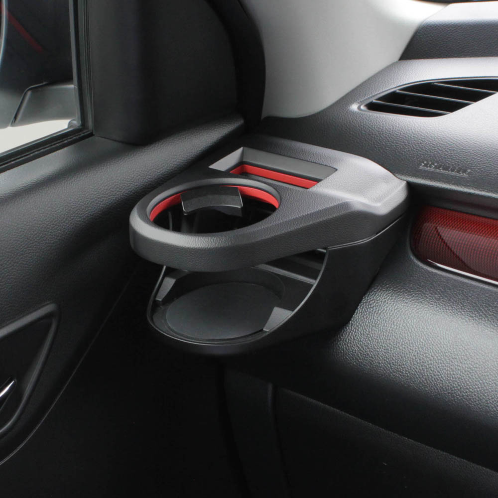 ・スイフト(Z#13S/33S/43S/53S/83S)の右ハンドル車の助手席側エアコン送風口パネルに取り付けできるドリンクホルダー。 ・エアコンの送風により、ドリンクを保冷・保温する効果がある。 ・専用設計で、エアコン送風口パネルにピッタリフィット。 ・ツメを引っ掛けながら、両面テープで貼るだけの簡単装着。エアコンフィンの可動を妨げない。 ・ドリンクのガタつきを抑える底面クッション付き。 ・細缶・350ml缶・500ml/600mlペットボトル・コンビニコーヒー等を収納可能。