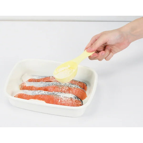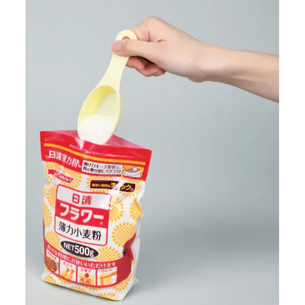 立てても横でも量れる目盛付の粉ふりスプーンです。