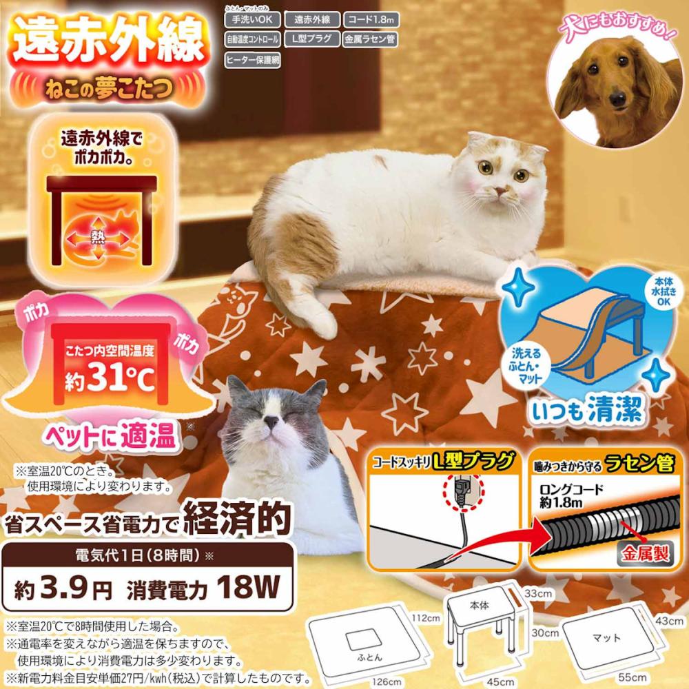 ●猫ちゃんはもちろん、犬ちゃんにもおすすめ。消費電力18W。