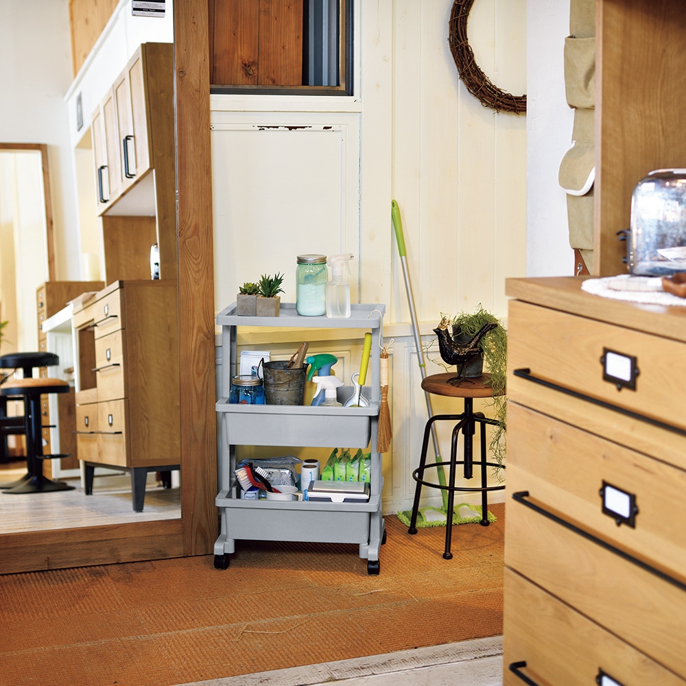 ■プラスチックなので水回りでも使いやすい。キッチン、ランドリー、リビングと様々なシーンで大活躍!
