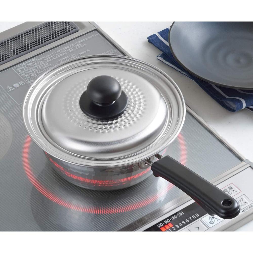 「ヨシカワ 味壱 ステンレス 雪平鍋」に使える兼用蓋 鍋と同じく槌目模様入り 雪平鍋と合わせてお使い頂くと料理の幅が広が。 2サイズ兼用できる