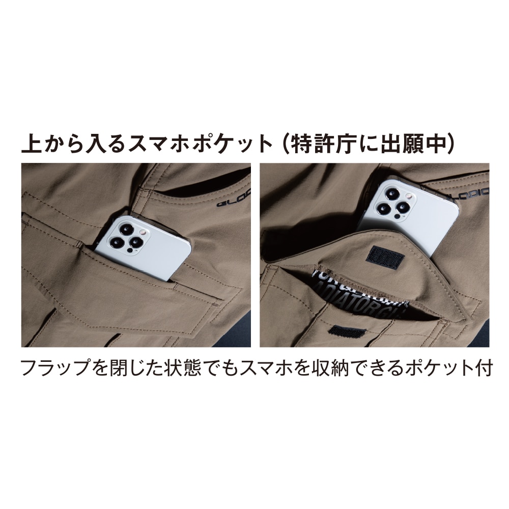 機能:両脇カラビナループ付き、両脇コインポケット付き、長財布も入るカーゴポケット、裾コードホール付き