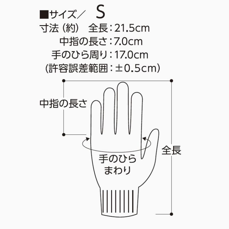 単品サイズ:S:約)全長21.5×中指の長さ7.0×手のひら周り17.0cm