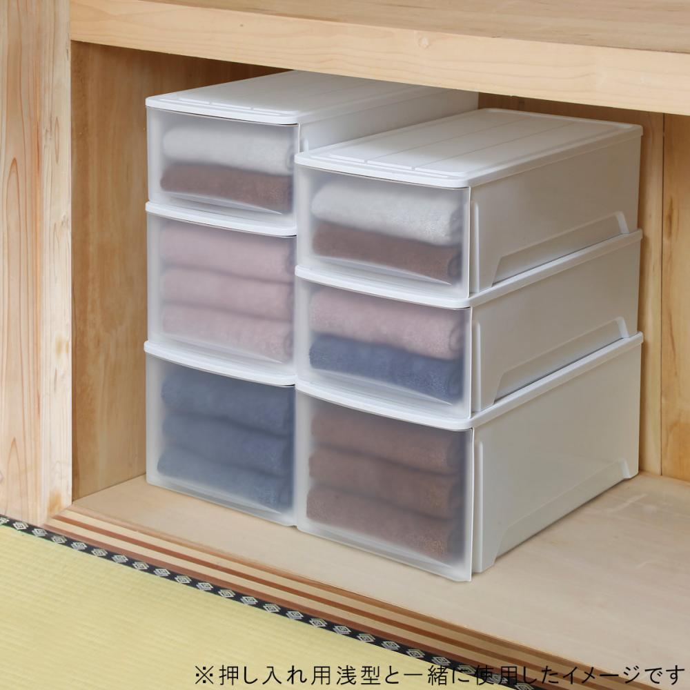 ■積み重ねて使えます。「アテーナライフ 押入用引出ケース 浅型」とも積み重ね可能。