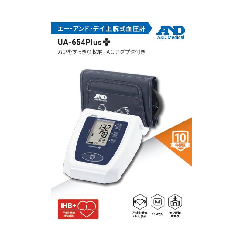 ACアダプタ付で、コンセントから電源が取れ、エコで経済的。 ワンボタンで簡単に測定できる。 からだにやさしい脱アレルギーカフ。 脈波の乱れをチェックする不規則脈波を検出。 測定値の分類がひと目でわかる血圧レベル表示。 最新60回分の測定値を自動保存。 手入力をすることでアプリでデータ管理が可能。標準付属品:取扱説明書、保証書、カフ収納ホルダー、ACアダプター、血圧管理手帳