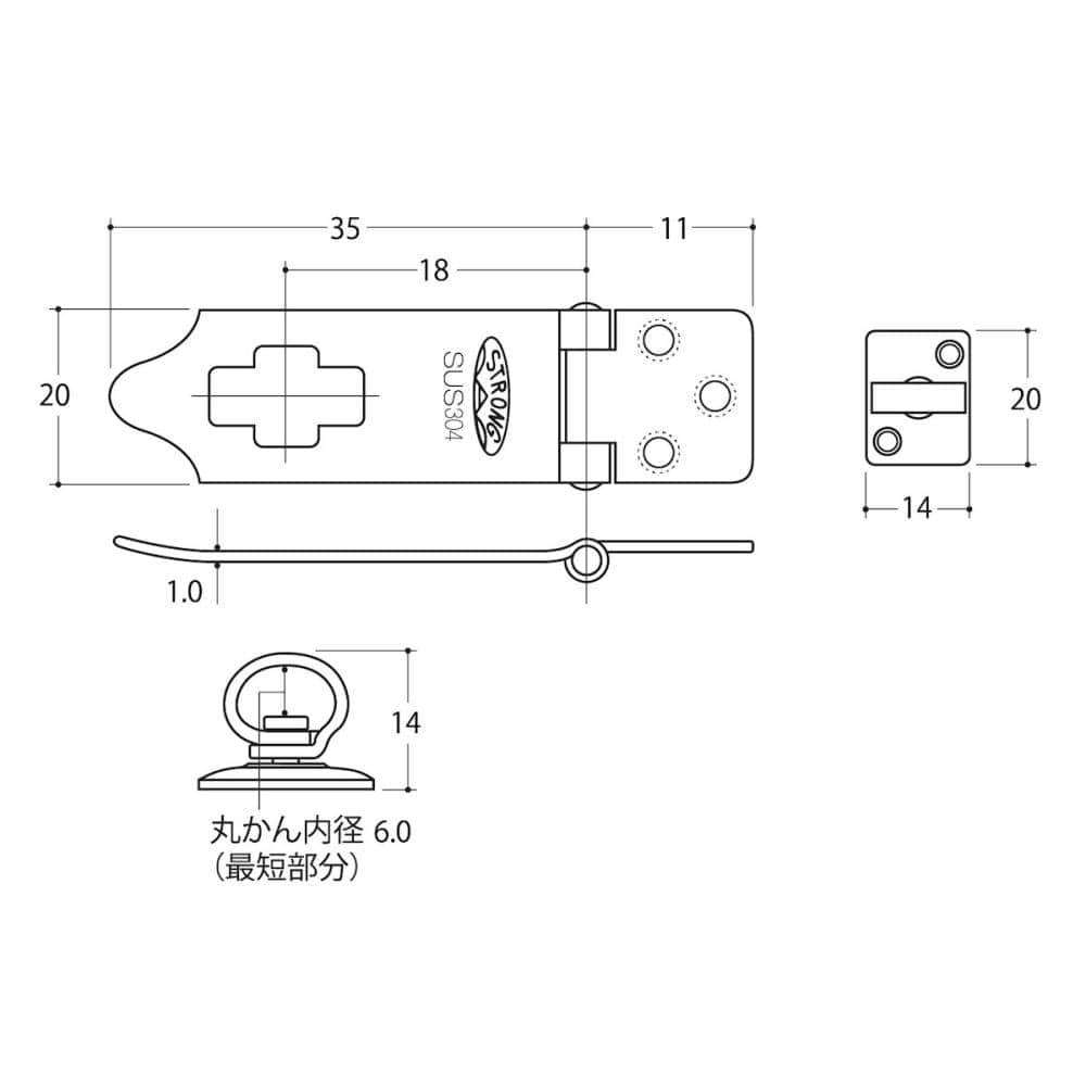 掛金の最重要部分でもある、丸かんと受座を強力固着させていますので、商品により人間の重量をも支えることができます。つまみ易くソフトで機能的なテーパー。ドアや戸の内締り金具として最適です。