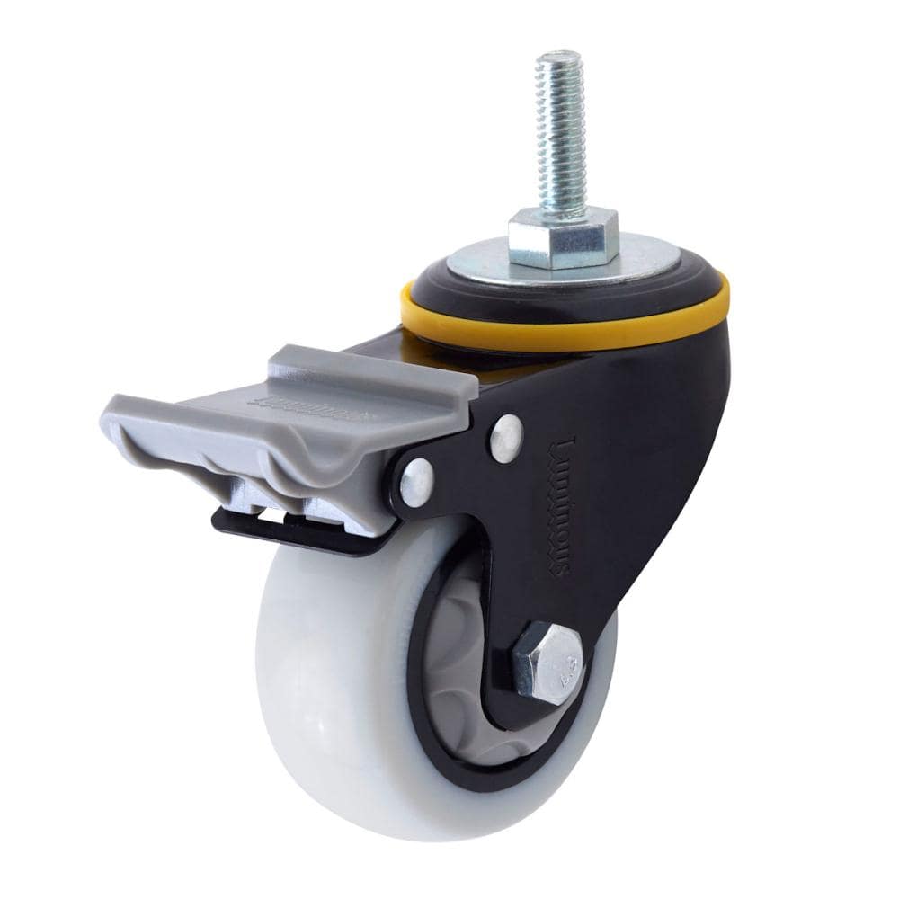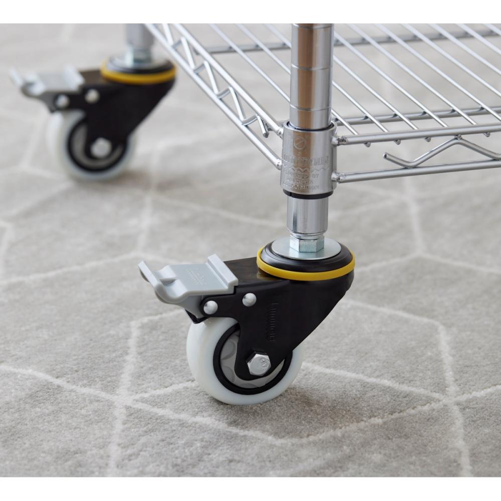 ■耐摩擦性,耐水性,耐油性,耐熱性,耐薬品性があります。強度が高くて摩擦が少なく、水・油に強いため厨房や工場・作業場での使用に最適です。 ■タイヤに硬さがあり歪みが少ないため、カーペット等の柔軟な床面での使用もおすすめです。 ■車輪径7.5cm、取り付け後高さ11cm。 ※注意事項 ・ルミナス専用パーツです。他社製品との互換性はありません。