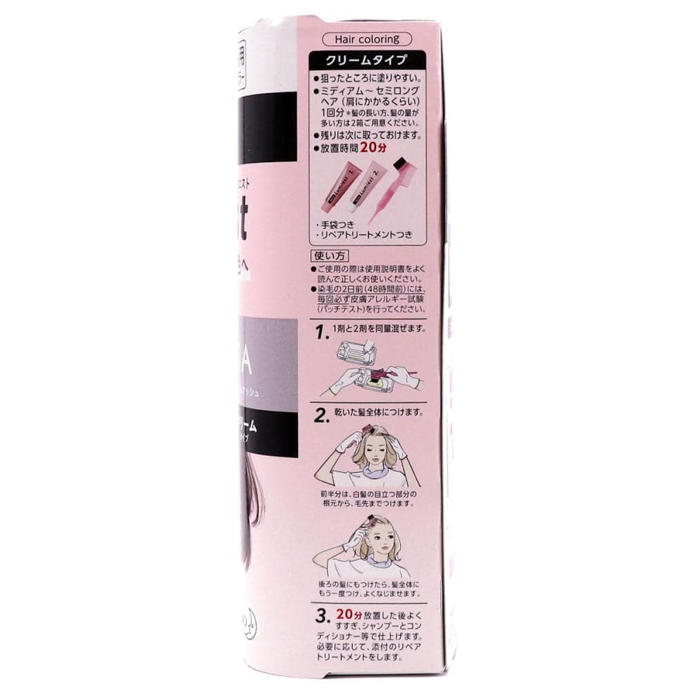 明るい色でも白髪も黒髪もバランスよく染まるから白髪を気にせず明るい髪色楽しめる! クリームタイプの白髪染め。指どおりなめらか、しっとり質感の染め上がり。 気になるニオイ立ちをおさえて、香りやさしく(医薬部外品) ※ヘアカラー後のデリケートな髪に。リペアトリートメントつき。傷んだキューティクルを補修し、しっとりまとまる髪へ。