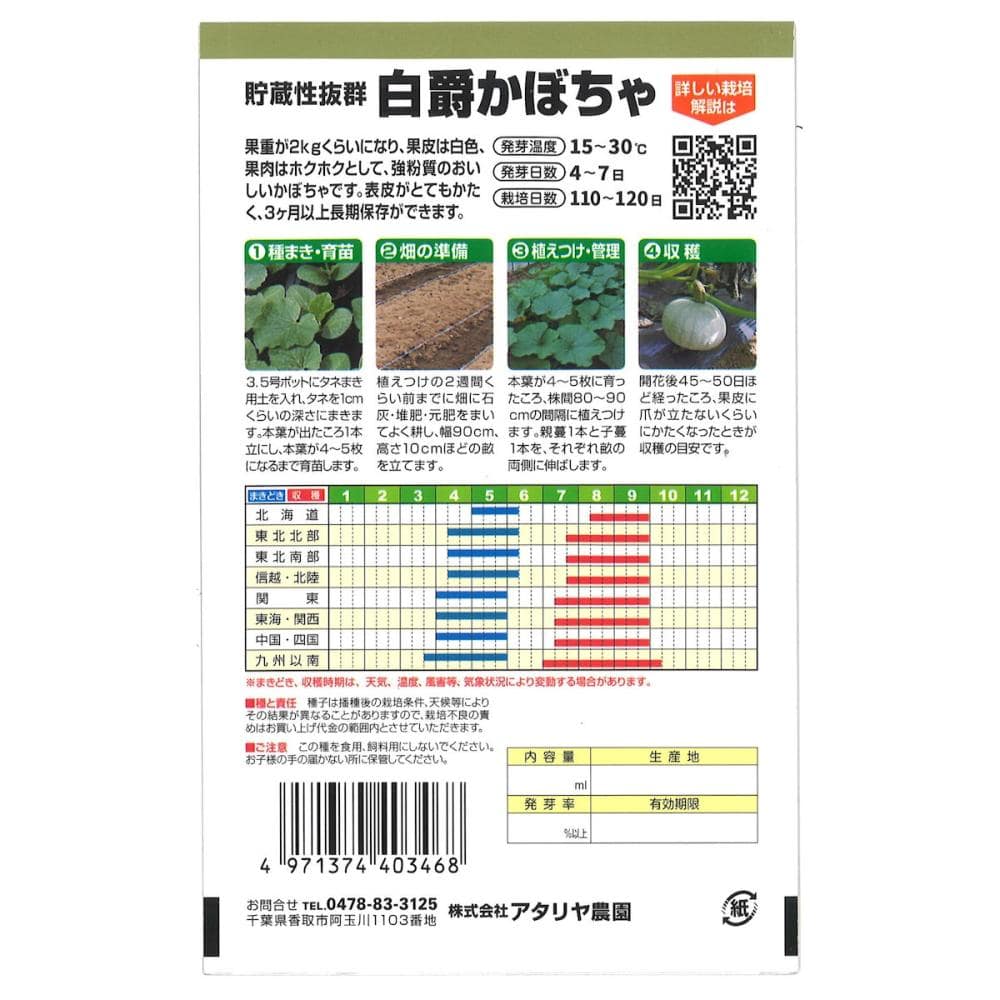 果重が2kgくらいになり、果皮は白色、果肉はホクホクとして、強粉質のおいしいかぼちゃです。表皮がとてもかたく、3ヶ月長期保存できます。