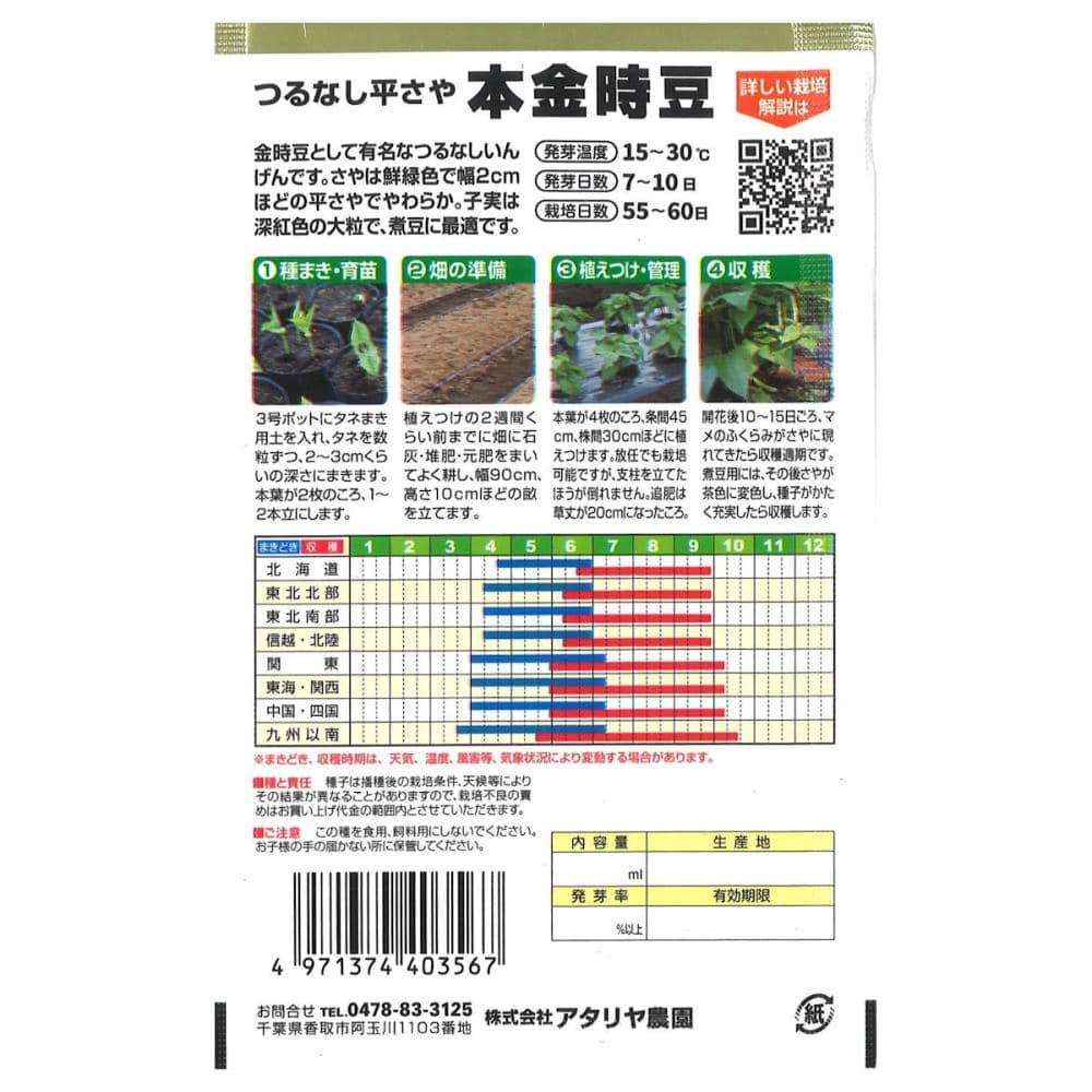 金時豆として有名なつるなしいんげんです。さやは鮮緑色で幅2cmほどの平さやでやわらか。子実は深紅色の大粒で、煮豆に最適です。