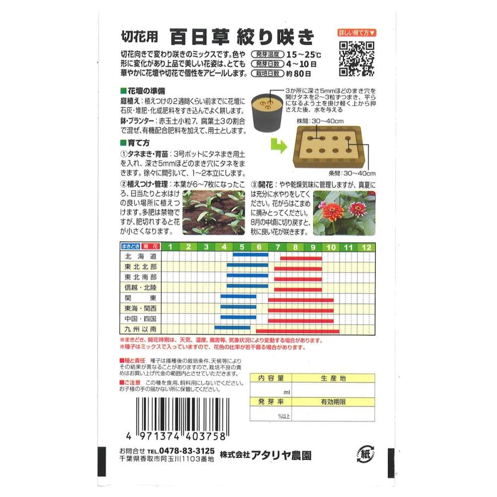 ●掲載のパッケージ画像(表側・裏側)に記載されている蒔き時期、収穫時期、発芽適温、発芽率、品種特長、その他注意事項をよくご確認の上、ご注文ください。