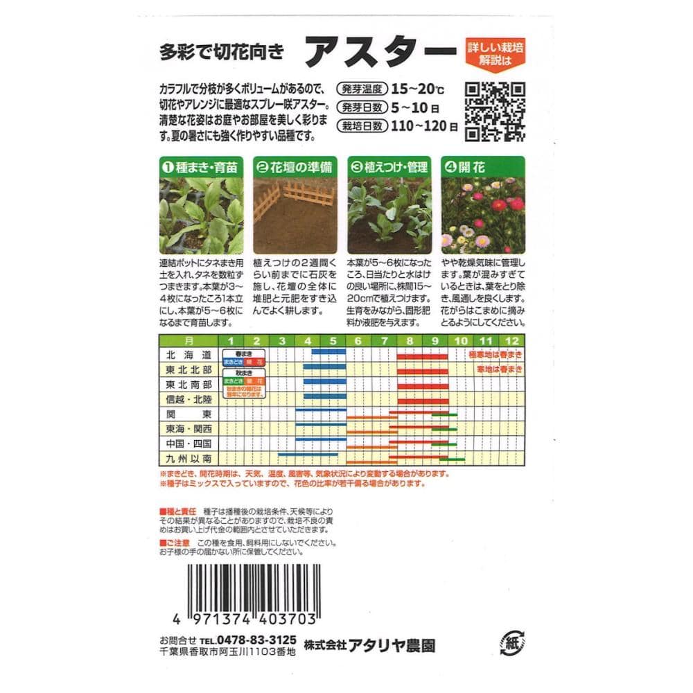 カラフルで分枝が多く、ボリュームがあるので切花やアレンジに最適なスプレー咲アスター。清楚な花姿はお庭や部屋を美しく飾ります。夏の暑さにも強く作りやすい品種です。