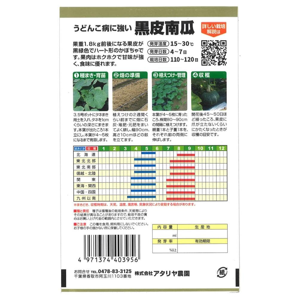 ●掲載のパッケージ画像(表側・裏側)に記載されている蒔き時期、収穫時期、発芽適温、発芽率、品種特長、その他注意事項をよくご確認の上、ご注文ください。