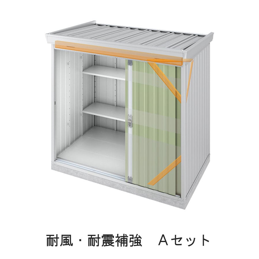 ●安心な物置にする補強オプション『耐風・耐震補強セット』。強風や地震に対する強度が建築基準法に対応した製品となり、より安心してお使いいただけます。後付けはできません。