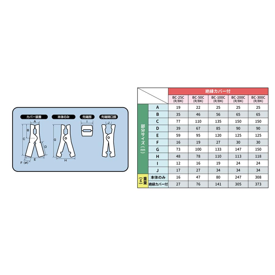 材質 : クリップ:鉄/カッパータイト 絶縁カバー:塩ビ 電線の太さ:約15mm2 厚み(板厚):0.8mm 重さ:約80g 絶縁カバー付:約141g