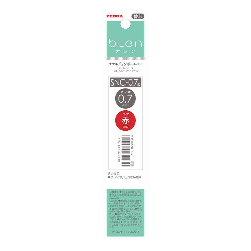ゼブラ ブレン エマルジョンボールペン替芯 SNC-0.7芯 0.7mm 赤インク RSNC7-R