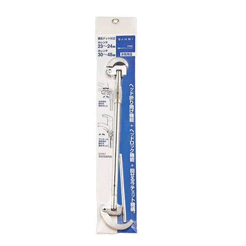 ヘッド部を90度折り曲げてからロックして固定可能 レンチを立てたままだとロックできません