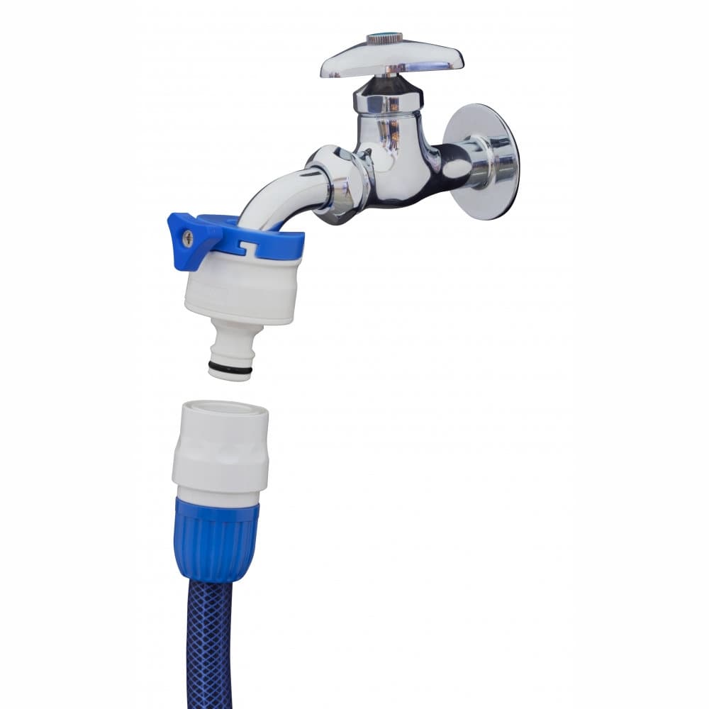 横水栓、自在水栓兼用。蛇口に差し込みビスを締め込み簡単取り付け。