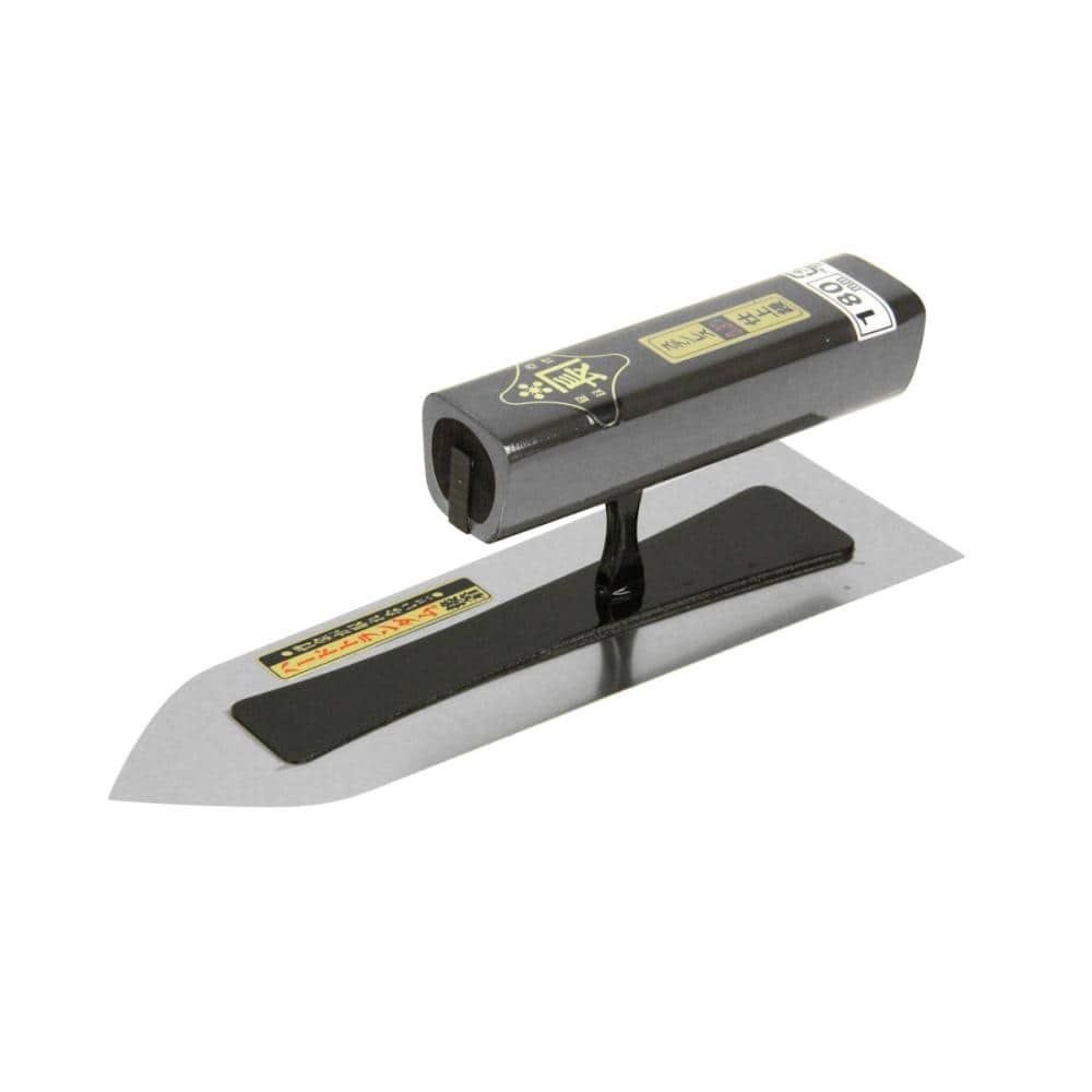 黒塗り角柄仕様で高級感があり、薄くてしなり、耐久性抜群の本職向け仕上げ鏝です。