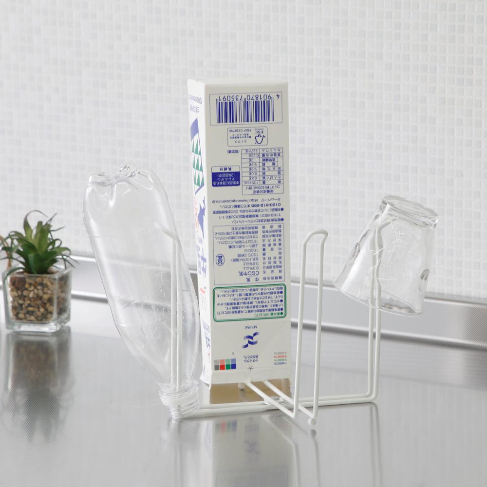 袋を掛けて即席ゴミ箱にしたり、ボトルやコップ、空き牛乳パックの水切りに