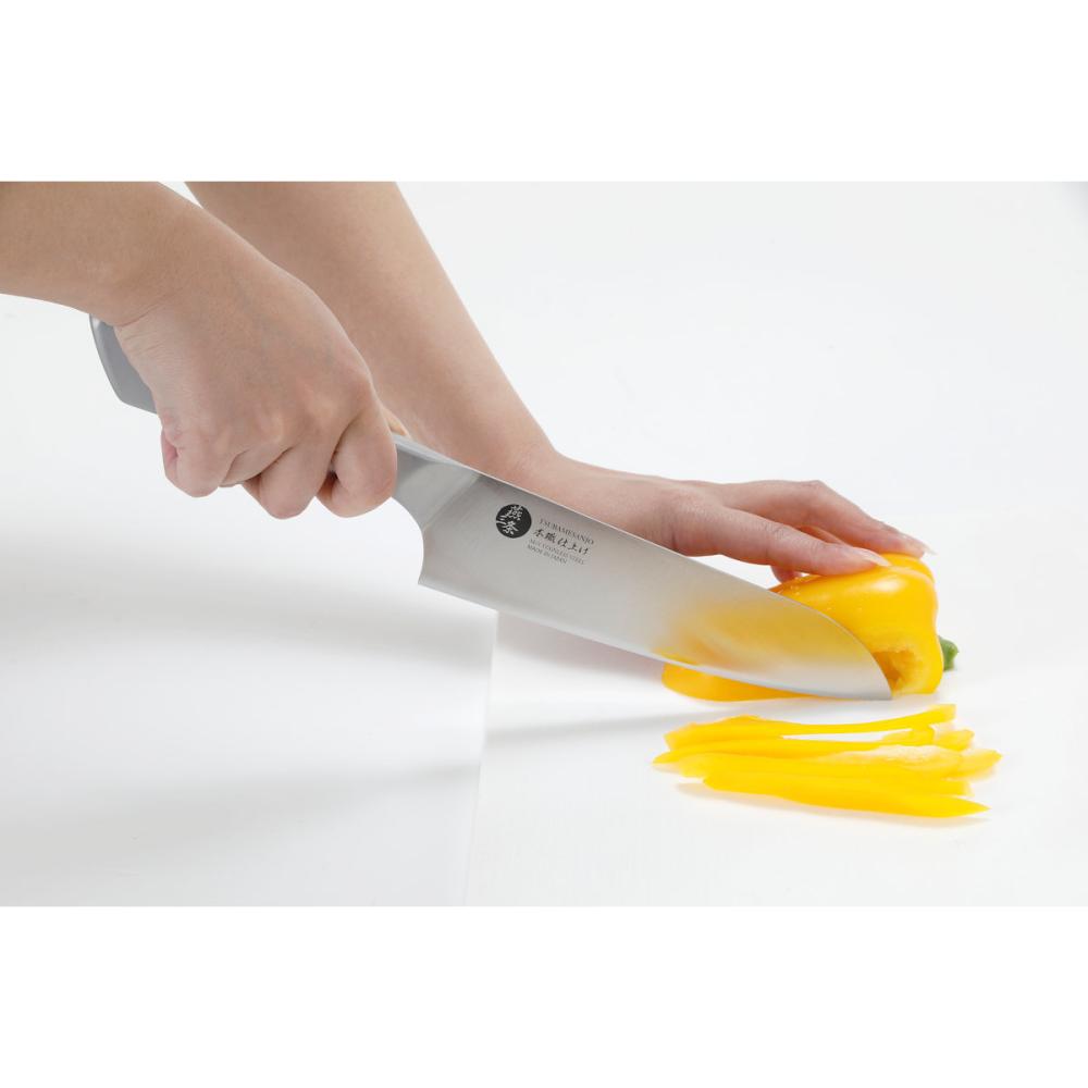 ■切り込みの良い手研ぎ刃付け 包丁の刃付けには電動機械研石を使われることが多いですが、本商品は1点1点手作業で包丁研ぎを行っています。手研ぎ包丁は優れた切れ味とその持続性、刃欠けしにくいのが特徴です。 ■水を使って研ぐことでより滑らかな仕上がり、切れ味、持続性に優れた包丁になります。 ■切れ味が持続するモリブデンバナジウムステンレス鋼を使用 ■継ぎ目のない一体成型ハンドルでお手入れしやすく衛生的 ■サビにくく切れ味が長持ちするオールステンレス製 ■手にフィットする直線形状のハンドル