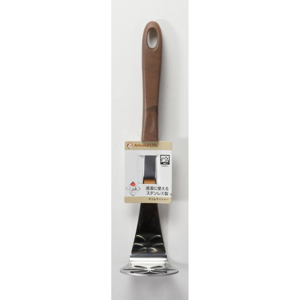 ポテトサラダ作りの必需品。 つなぎ目のないお手入れ簡単なワンピースツール。 木目調の樹脂ハンドル。