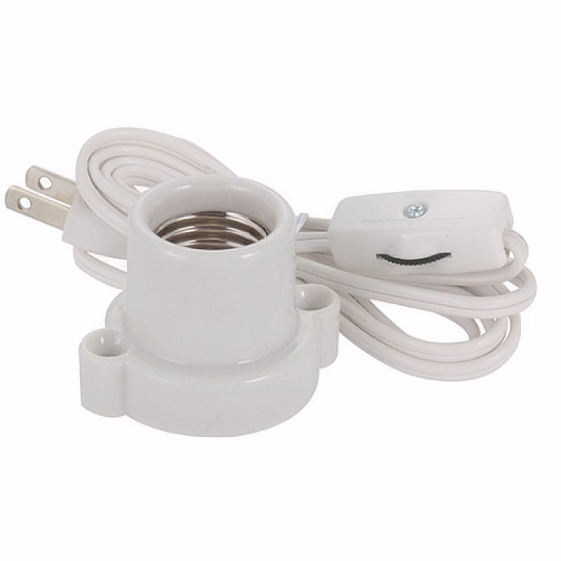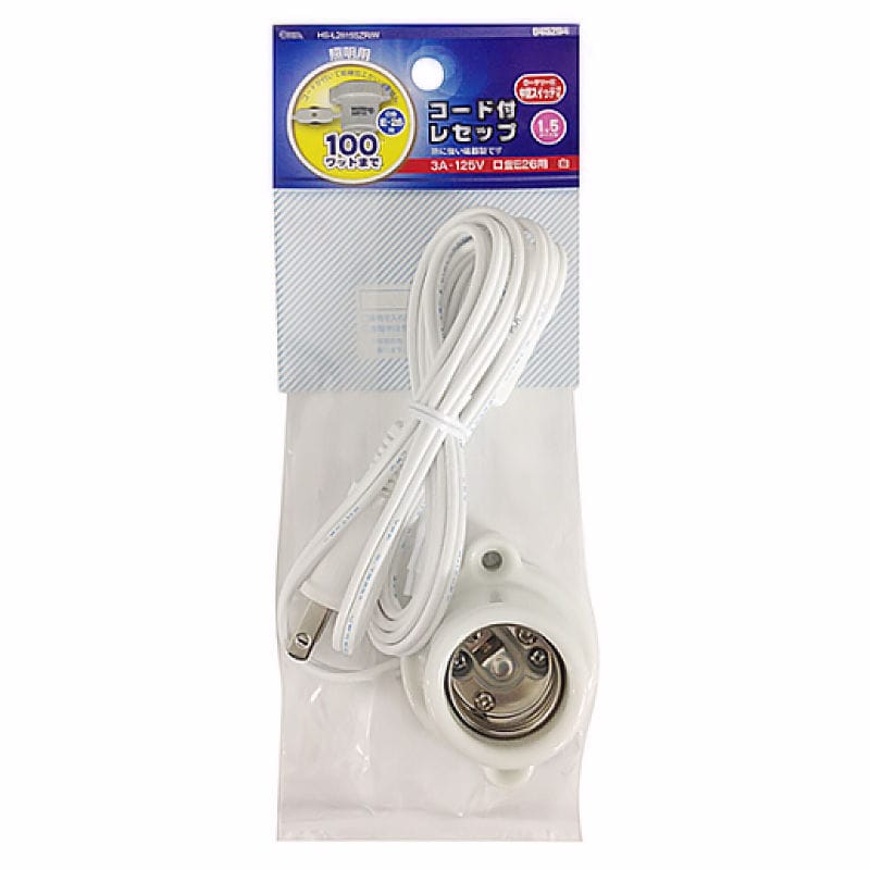 ■ 口金:E26 ■ 定格:3A-125V ■ コード長:1.5m ■ 色:白 ■ 使用電線:ビニール平行線(VFF)0.75mm2×2芯 ■ 取付ピッチ:50mm ■ 適合取付けネジ径:直径 4mm(ネジは別売です)