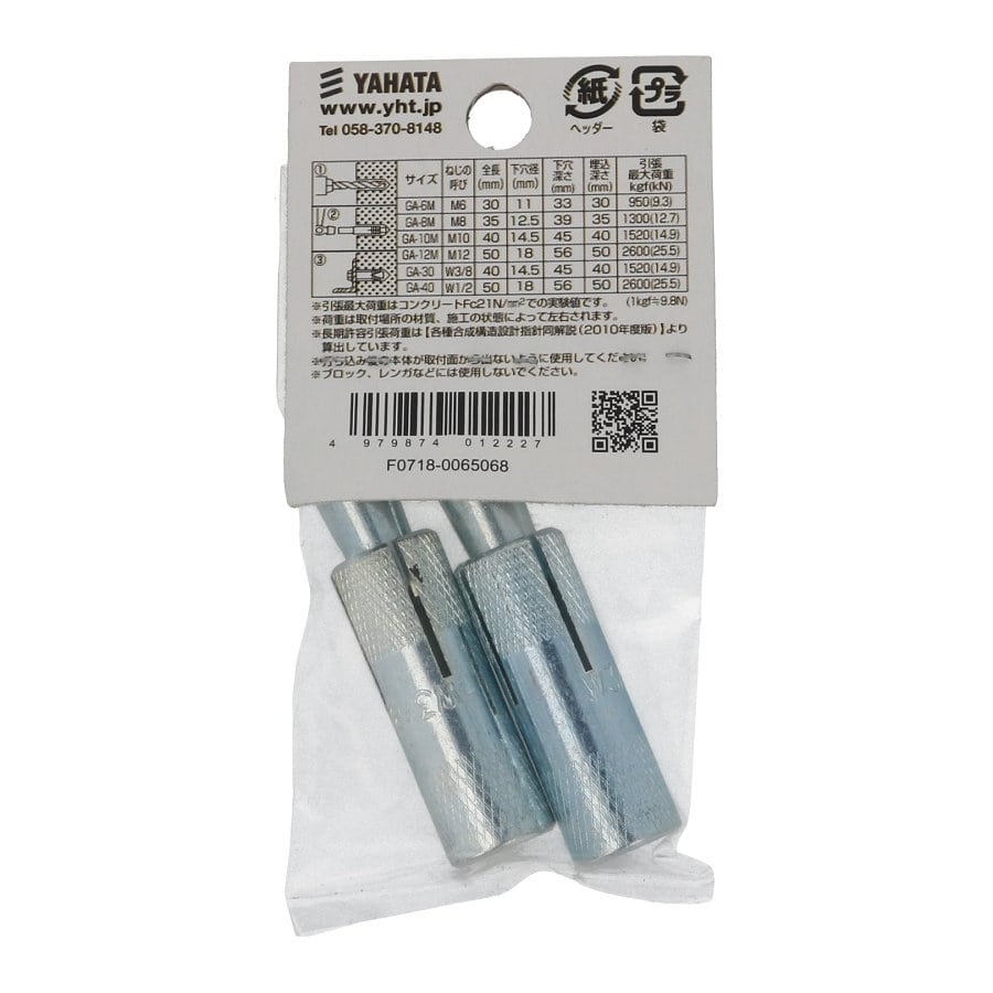 引張最大荷重14.9kN。穿孔径 14.5mm 穿孔深さ 45mm 埋込み長さ 40mm。 2本入