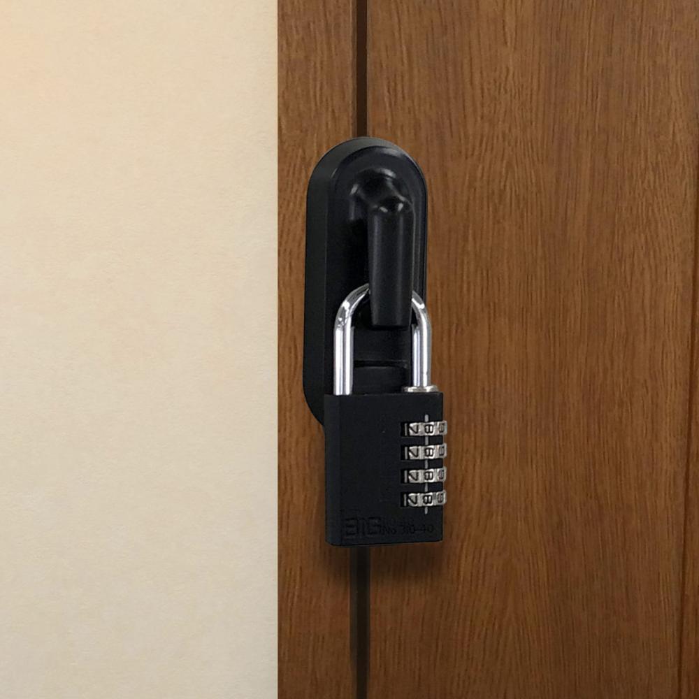 ダイヤル錠タイプ。内開きドアの室内側にも取付可能。使用しない時は付属のマグネットシートを使えば、スチールドアに貼り付け出来ます。カブセ扉・親子扉は取付ができません。ドアとの隙間が大きい場合は付属のスペーサーをご利用下さい。(2枚付属)