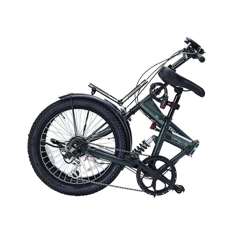 その他仕様:BMXタイプハンドルバー、20×2.35タイヤ、折畳二重ロック、Wギアカバー、フロントキャリア、リアサスペンション、ディレイラーガード他