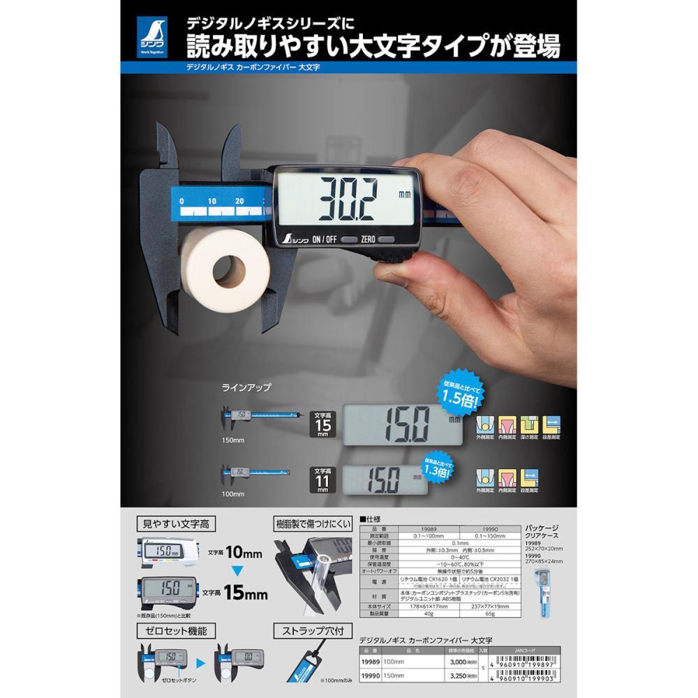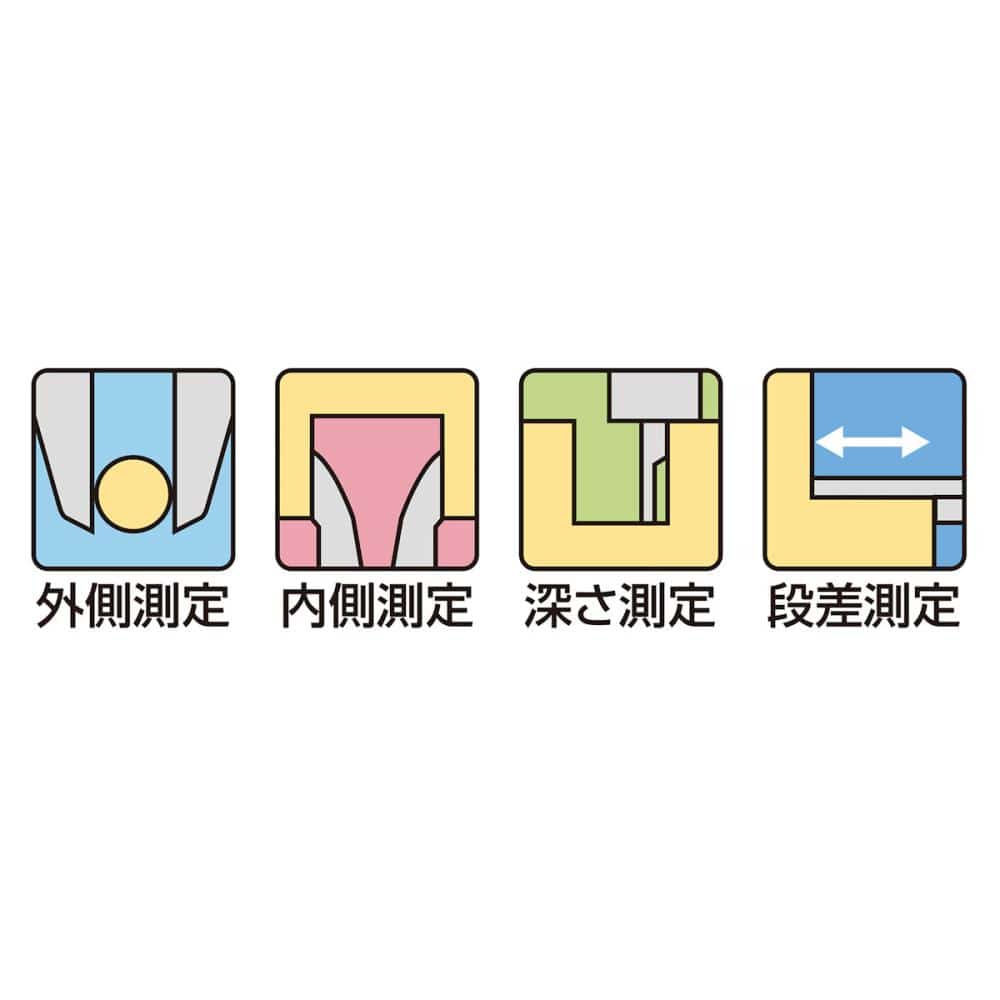 "外側測定、内側測定、段差測定、比較測定、間接測定が出来ます。 スライダーを動かすと自動で電源が入ります。 無操作状態が続くと自動で電源が切れます。 カーボンファイバー製なので測定物に傷を付けません。 ■精度仕様 ●器差:外側測定+-0.3mm、内側測定+-0.5mm ■測定範囲:0.1~150mm ■最小読取値:0.1mm ■オートパワーオフ:約5分 ■電源仕様 ●電源:リチウム電池CR1620 1個 ●電池寿命:通常使用で約1年"