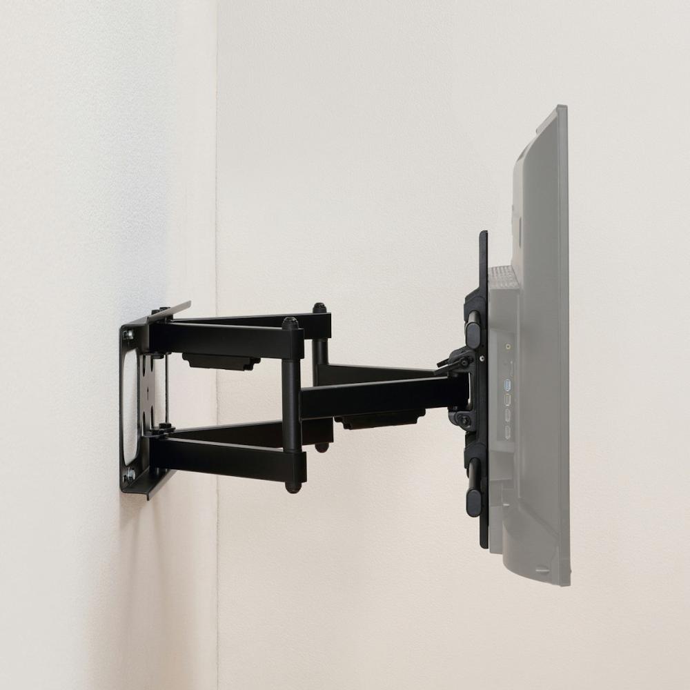"壁に設置することで省スペースになり、インテリア性も抜群です。 また地震による転倒なども防ぐことができます。用途やお好みに合わせて、壁面からの距離や画面の角度調整が可能です。"