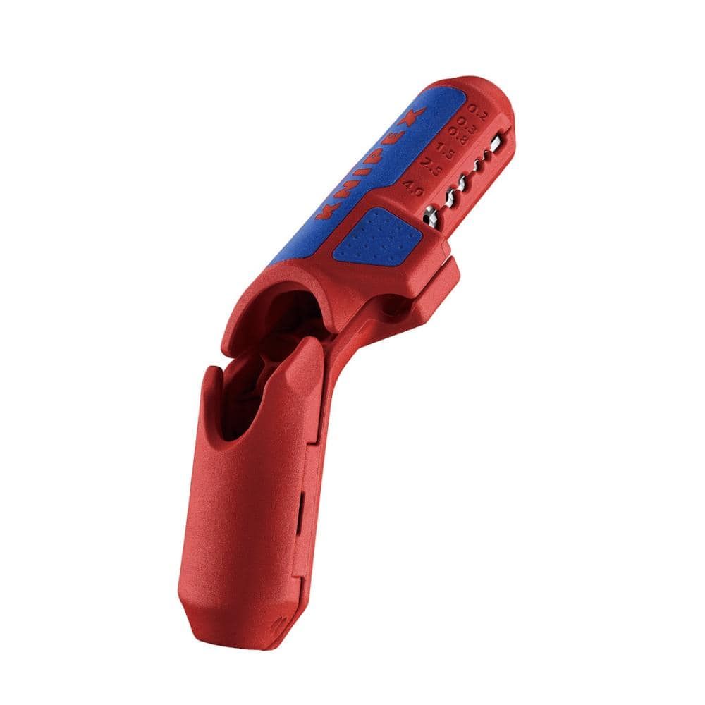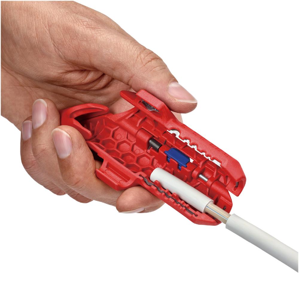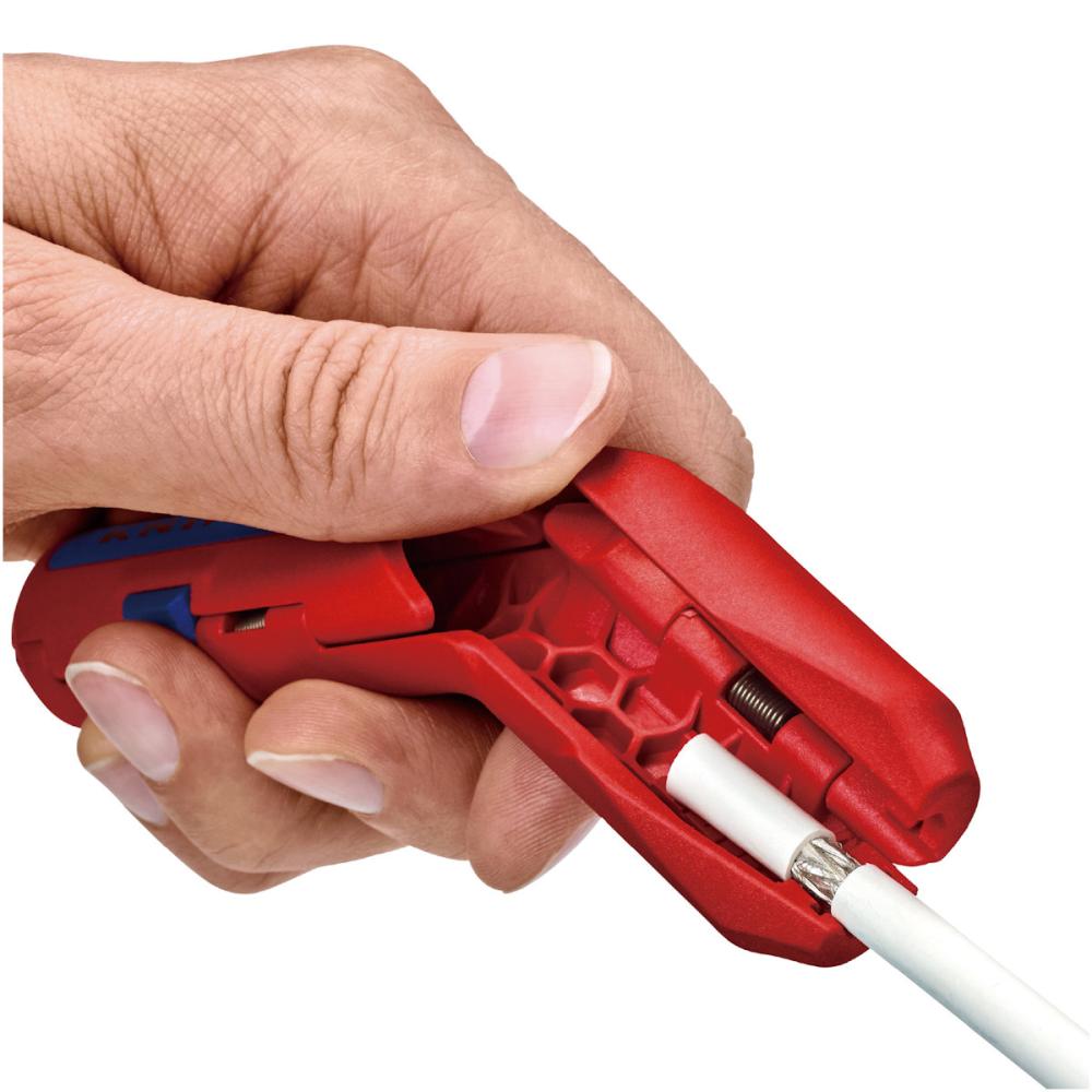 ●絶縁被覆ストリッピング可能範囲(径mm):8.0-13.0●絶縁被覆剥ぎ取りの数値(丸型ケーブル;径mm):8-13●絶縁被膜剥ぎ取りの数値(導体と素線;mm2):0.2-4.0●絶縁被覆剥ぎ取りの数値(データケーブル):CAT、5~7、ツイストペア(UTP/STP)●絶縁被覆剥ぎ取りの数値(同軸ケーブル;径mm): 4.8-7.5●全長(mm):135●質量(g):75●あらゆる丸型ケーブルおよび防湿ケーブル(NYMケーブル3×1.5mm2~5×2.5mm2など)、データケーブル(撚り対線)、同軸ケーブルの外被除去や絶縁被覆剥ぎ取りを素早く精密に行います。●人間工学に基づいた革新的でなピストル型グリップデザイン。●外被の簡単な切込み、引き剥がし、縦方向の切断に適しています。●円錐形に細くなっているツールエンドにより、狭い場所でのアクセスがさらに改善されました。●断面積が0.2/0.3/0.8/1.5/2.5/4mm2用のストリッピング工具。●位置決め用ウェブにより、絶縁被覆の剥ぎ取りのために個々の導体を簡単に挿入できます。●開口ばねとロック用の爪付き。●開口支援により、同軸ケーブルおよびデータケーブルが楽に挿入できます。●軟らかいプラスチック製ゾーンのあるマルチコンポーネント設計により、握りやすさと確実なホールド感を提供しています。●安定したグラスファイバー強化プラスチック製ハウジング。●サイドに突き出している指置きの中に隠れているカッターで縦方向のカットも快適です。●左利き用。●NYMケーブルの外被除去に。●個々の導体の絶縁被覆剥ぎ取りに。●データケーブルの外被除去に。●同軸ケーブルの外被除去に。●同軸ケーブルの絶縁被覆剥ぎ取りに。