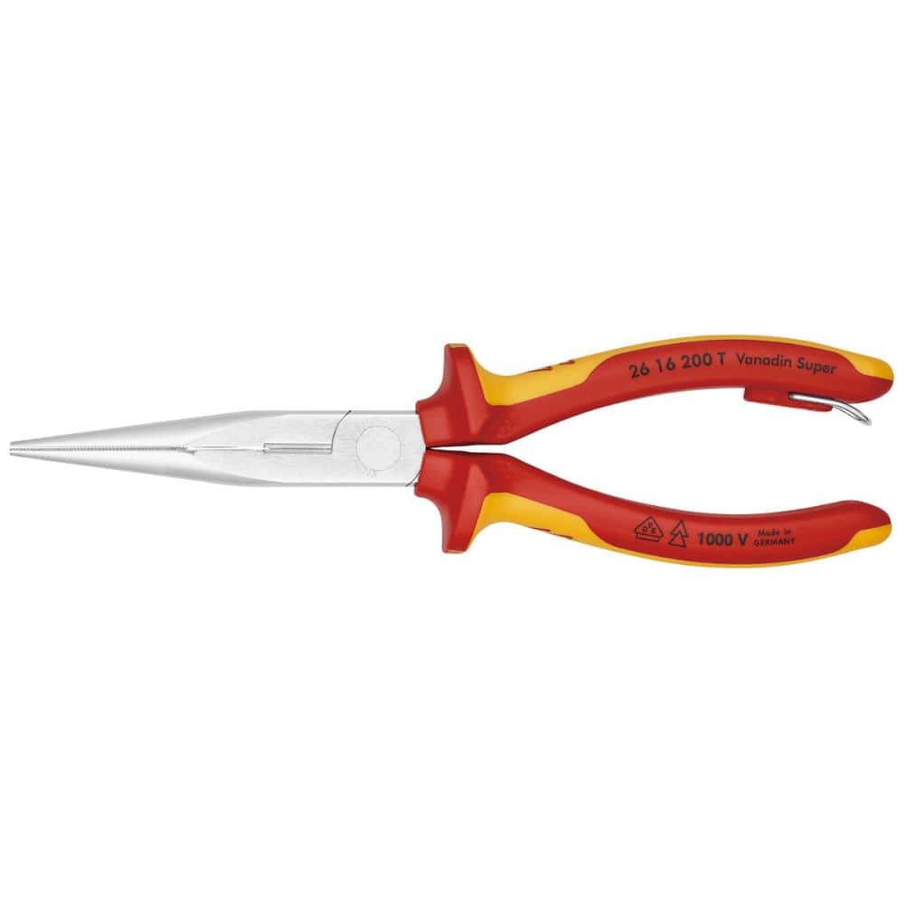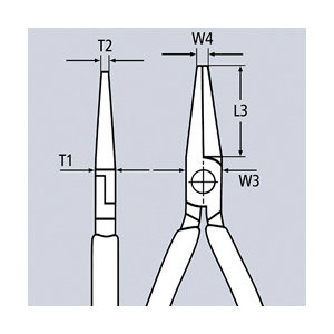 ●ヘッド仕上げ:クロムメッキ●ハンドル仕様:1000V絶縁(VDE絶縁テスト済み)●スタイル:半丸口●つかみ面:横すじ入り●切断面:傘状●切断能力(中硬線;径mm):3.2●切断能力(硬線;径mm):2.2●口先の長さ(L3;mm):73●ジョイント部の厚さ(T1;mm):9.5●ジョイント部の幅(W3;mm):18●口先先端の幅(W4;mm):3●口先先端の厚さ(T2;mm):2.5●全長(mm):200●質量(g):215●高負荷にも耐える柔軟な精密先端部。●平坦円形の、長いアゴ。●掴み面に歯形が付けられています。●径3.2mmの中硬線および径2.2mmの硬線のカッター付き。●高周波焼き入れを施した切断刃、刃の硬度約61HRC。●バナジウム電気鋼、鍛造、多段階油焼き入れ。●くちばし型プライヤー。●滑り落ち防止を取り付けるための一体型絶縁固定留め輪付き。